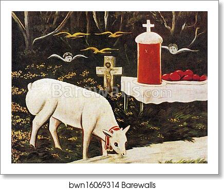 Lamb and Easter Table with Flying Angels by Niko Pirosmani, Art Print