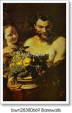 Satyr and Girl with a Basket of Fruit by Jacob Jordaens, Art Print