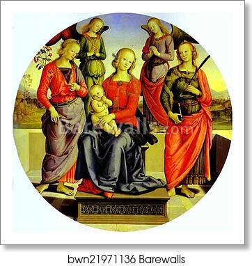 The Virgin and Child Surrounded by Two Angels, St. Rose, and St. Catherine by Pietro Perugino, Art Print
