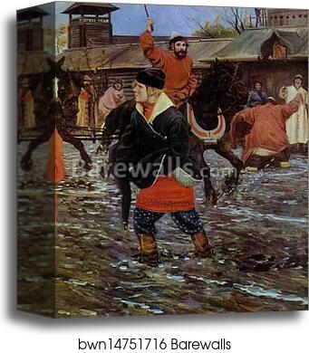 A XVII-century Moscow Street on a Holiday. Detail - Canvas Print