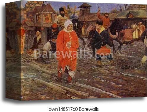 A XVII-century Moscow Street on a Holiday by Andrey Ryabushkin, Canvas Print