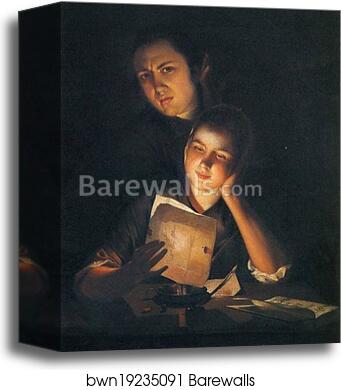 Girl Reading a Letter by Candlelight, With a Young Man Peering over Her Shoulder by Joseph Wright Of Derby, Canvas Print