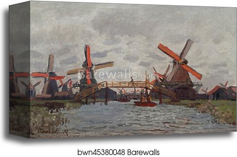 Mills at Westzijderveld near Zaandam by Claude Monet, Canvas Print