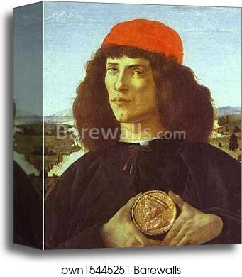 Portrait of a Man with the Medal of Cosmo the Elder by Alessandro Botticelli, Canvas Print