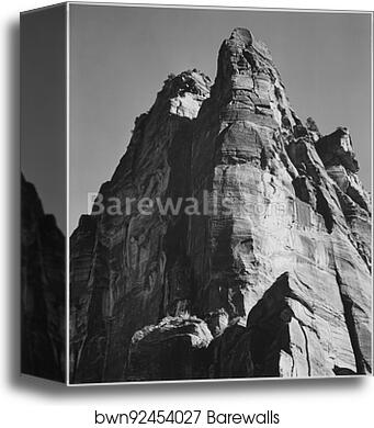 Rock formation, from below, "In Zion National Park," Utah. (Vertical orientation). Photographs of National Parks and Monuments, compiled 1941 - 1942, documenting the period ca. 1933 - 1942 by Ansel Adams (1902-1984), Canvas Print