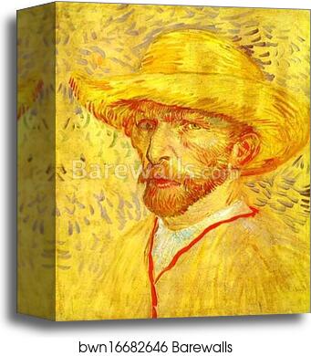 Self-portrait with Straw Hat by Vincent Van Gogh, Canvas Print