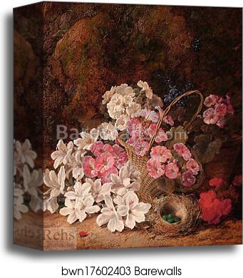 Still Life of Flowers, Bird's Nest and Basket by George Clare, Canvas Print