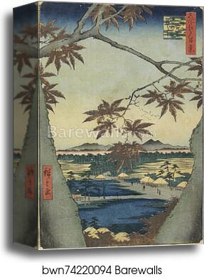 The maple leaves of Mama, Tekona shrine and Tsugi bridge by Utagawa Hiroshige, Canvas Print